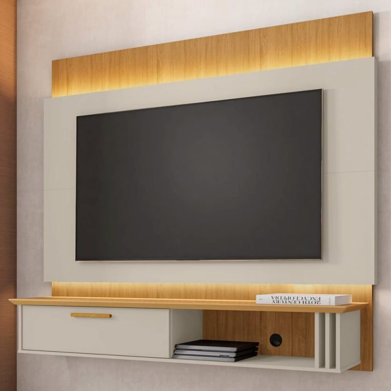 Panel Rack Tv 65″ Paris – Blanco Invierno / Canela