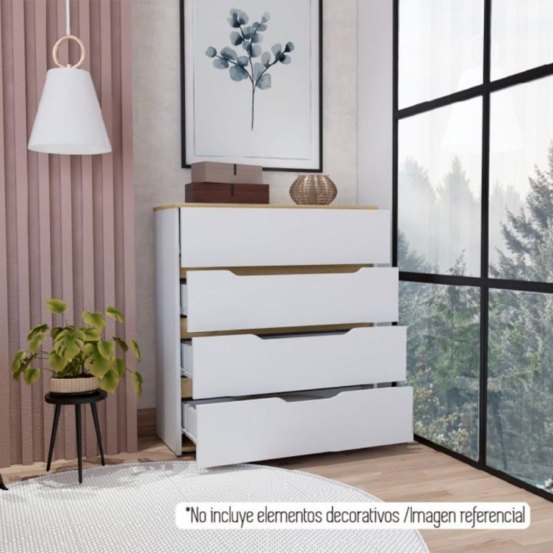 Comoda Kaia 5 Cajones – Miel / Blanco