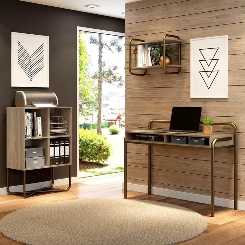 Estante 2 Niveles Connect – Noce / Oro Envejecido