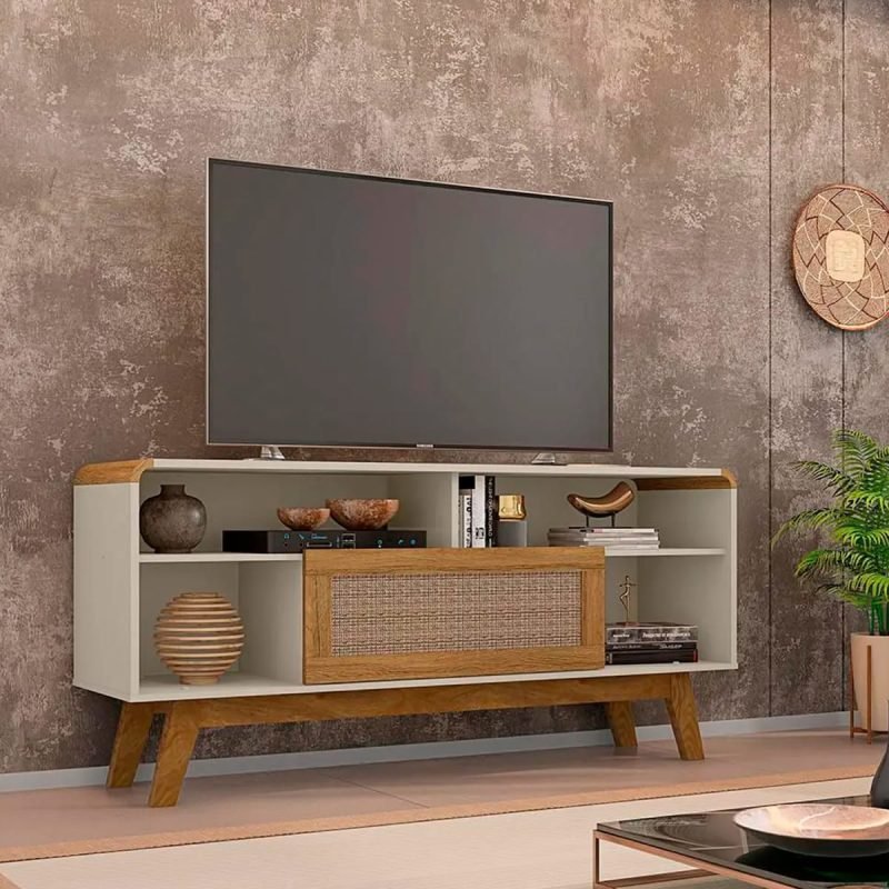 Rack Tv 55″ Lazuli – Blanco Invierno / Rattan