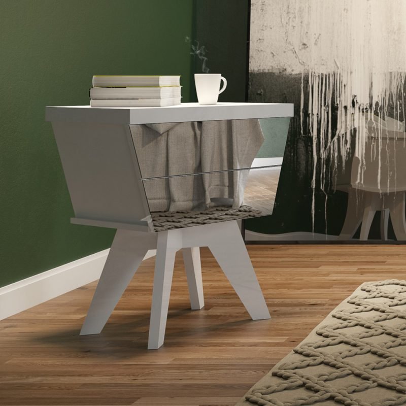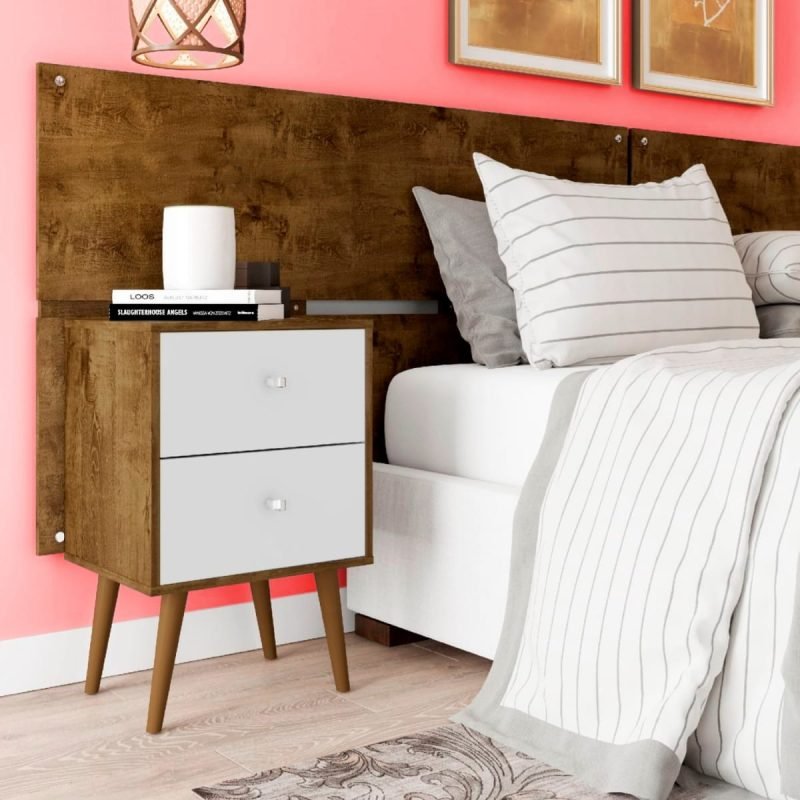 Velador 2 Cajones – Rústico / Blanco