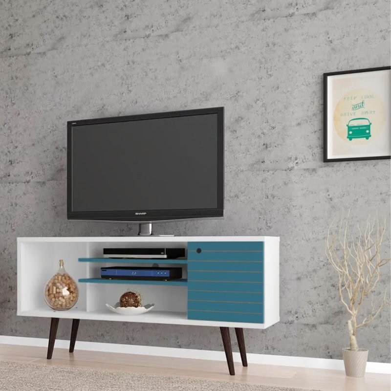 Rack TV 55″ Safira – Blanco / Azul